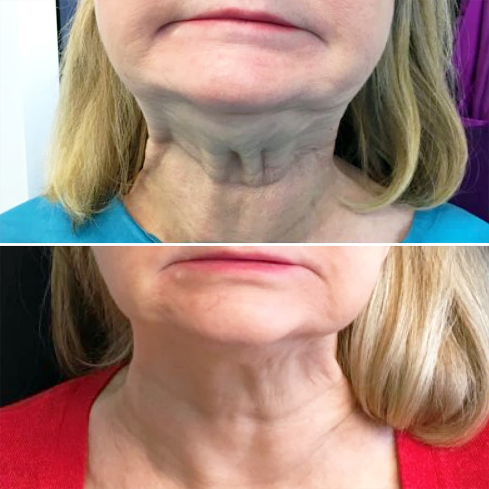 Миттєво підвищує пружність шкіри, створює ефект підтяжки та робить контури шиї чіткішими.