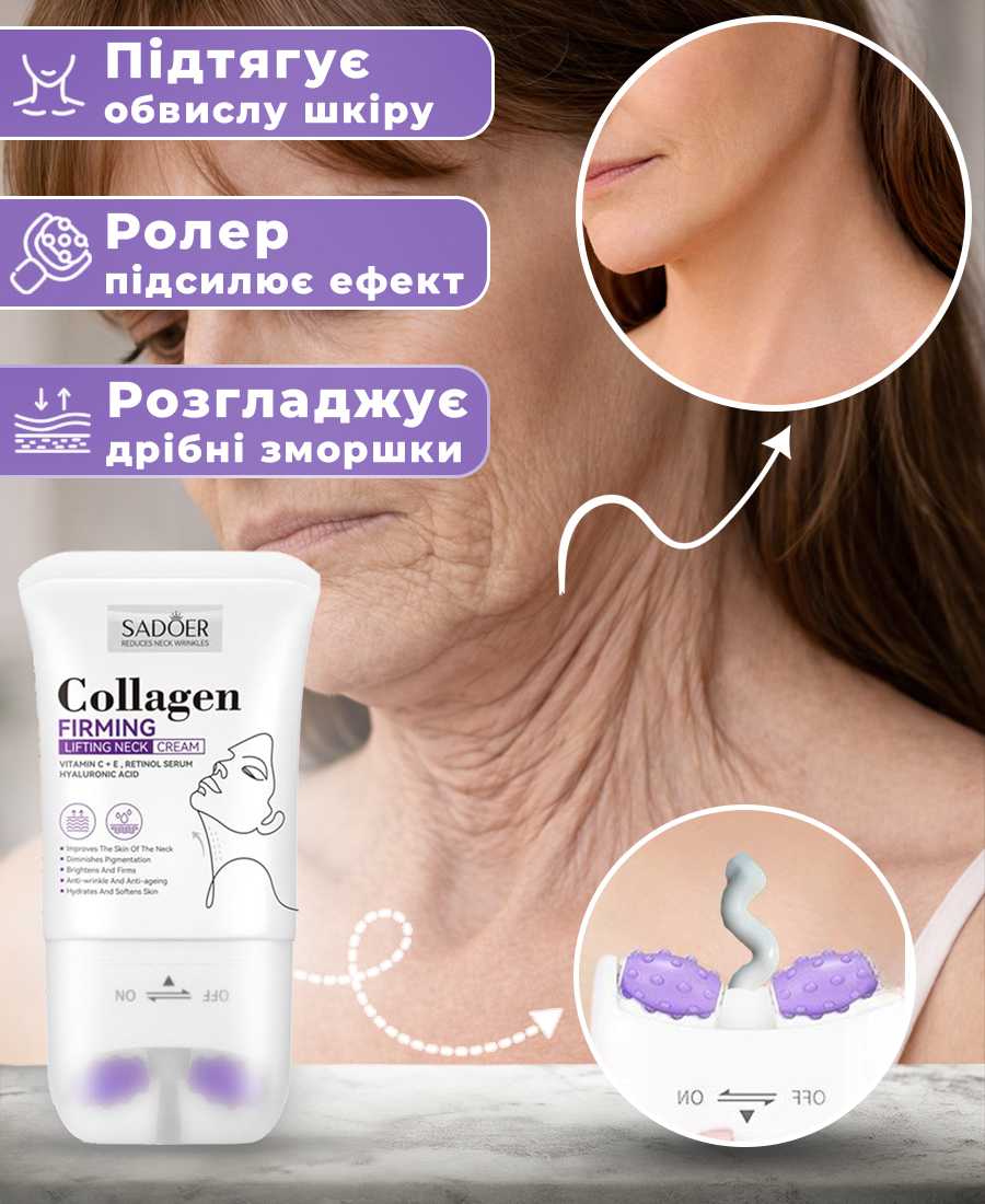 Дуже сподобався крем ❤️ Шкіра на шиї стала більш пружною вже після кількох застосувань. Особливо подобається роликовий аплікатор — приємно масажує і крем швидко вбирається. Користуюсь щодня.